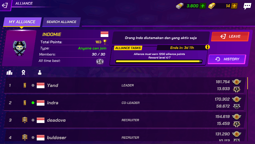 To leave an Alliance you must enter to the Alliance Screen present on the Garage, select the Leave Button and Confirm your Selection.