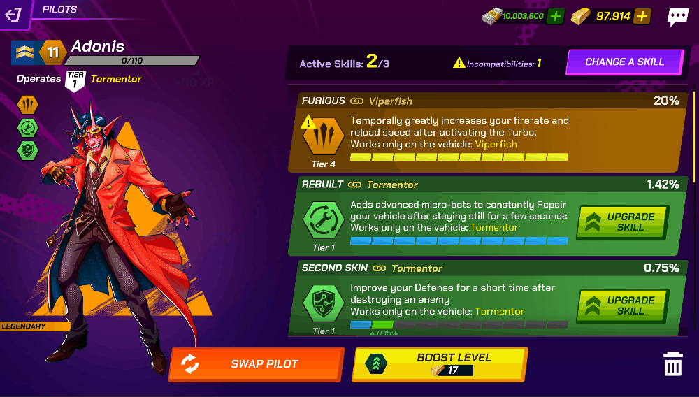 - Choose: By spending more gold you can choose between all available Vehicle Abilities for the current Vehicle your Pilot is equipped to. Chosen Abilities are always T1. Also, the cost depends on the Pilot Level.