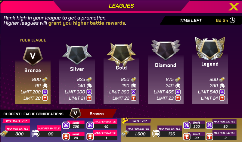 The higher your League, the higher the battle rewards you will receive after each battle. Reach the top leagues to earn the best rewards.