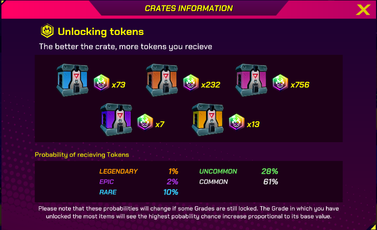 TOKENS PER CRATE, AND RARITY CHANCES